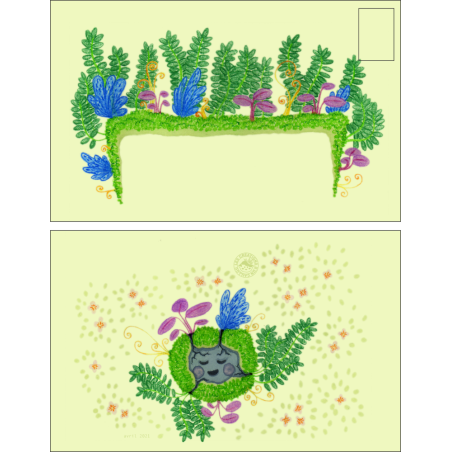 Une enveloppe colorée ornée d'un paisible caillou et d'un myriade plantes, assez grande pour envoyer plein d'affection aux gens que vous aimez 💚 !