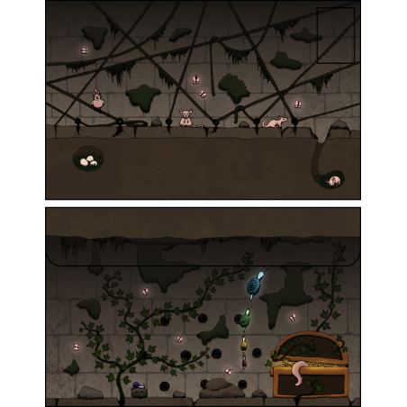 Une enveloppe colorée mais sombre ornée d'un donjon abandonné où la nature a repris ses droit et où moult être-vivants se sont installés, assez grande pour envoyer plein d'affection aux gens que vous aimez 💚 !