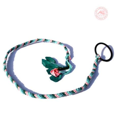 L'atéba elle même est tressée à la main a partir de fils de coton, et accrochée à un petit élastique pour cheveux d'environ 2,5cm de diamètre.