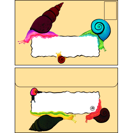 Une enveloppe colorée ornée d'escargots bariolés de toutes les couleurs, assez grande pour envoyer plein d'affection aux gens que vous aimez 💚 !
