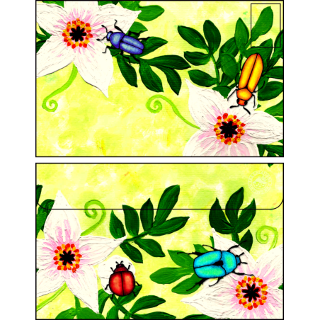 Enveloppe grandes fleurs et coléoptères 19x12cm